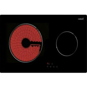 Vùng nấu hồng ngoại bên trái và bếp từ phía bên phải với hai kích thước tương đương nhau có thể đáp ứng được nấu nướng trên mọi loại nồi xoong.
