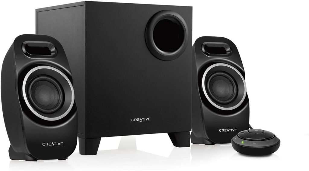 – Thiết kế Creative Dual Slot Enclosure (DSE) sử dụng một ống thông đảm bảo cho âm mid bass khỏe. Khi kết hợp với loa subwoofer đánh xuống (down-firing) thiết kế sẵn, hệ thống có thể cho ra âm bass mạnh mẽ.