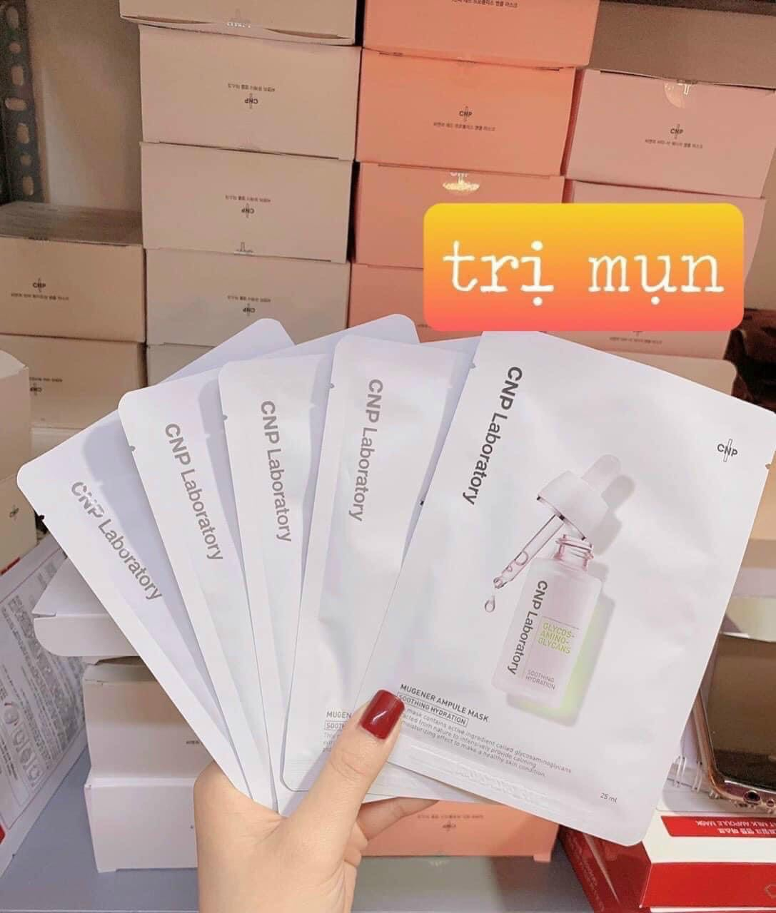 ̣̆ ̣-̣̆ ̣ ̣̂ ̃ ̛̛̣ ̃ ̂̉ ̀ Đ̂̀ ̀ ̂́ CNP Laboratory là thương hiệu DƯỢC MỸ PHẨM của Hàn Quốc được thành lập năm 1996. Các sản phẩm được trải qua quá trình kiểm nghiệm nghiêm ngặt chứa các thành phần lành tính không kích ứng da. ➡️ Với mục tiêu chăm sóc và mang đến làn da khỏe mạnh, CNP Laboratory được nhiều chị em phái đẹp không chỉ ở Hàn Quốc mà còn ở khắp nơi trên thế giới tin dùng. CNP Laboratory giành được rất nhiều giải thưởng, được người tiêu dùng tại Hàn Quốc cực kỳ ưa chuộng vì hiệu quả của sản phẩm.❌ ĐẶC BIỆT Sản phẩm của CNP Laboratory nói KHÔNG chứa phụ gia hoặc màu nhân tạo, paraben, hương thơm nhân tạo, dầu khoáng và benzophenone. Nạ Mugener Ampoule Mask (Màu trắng) - CẤP NƯỚC - GIẢM SƯNG MỤN - DƯỠNG ẨM Duy trì độ ẩm và sự căng mọng của da nhờ chứa chất glycosaminoglycans chiết xuất từ dịch ốc sên. Có tác dụng làm giảm mẩn đỏ, làm dịu làn da bị mụn và làn da nhạy cảm hiệu quả. Chứa hydration giúp cấp nước, dưỡng ẩm da. Nạ Vitamin B - Energy Ampule Mask - Mặt nạ DƯỠNG TRẮNG, CĂNG BÓNG DA ( màu hồng) Gồm 7 phức hợp Vitamin B khác nhau giúp cải thiện tone da. Cải thiện làn da mệt mỏi Chứa (Glutathione, Niacinamide) làm trắng da, chống lão hóa (Niacinamide, Citric Acid) và thúc đẩy quá trình làm lành vết thương (Sodium Hyaluronate). Nó cũng chứa các thành phần tốt cho da khô (Butylene Glycol, Sodium Hyaluronate, Glycerin)