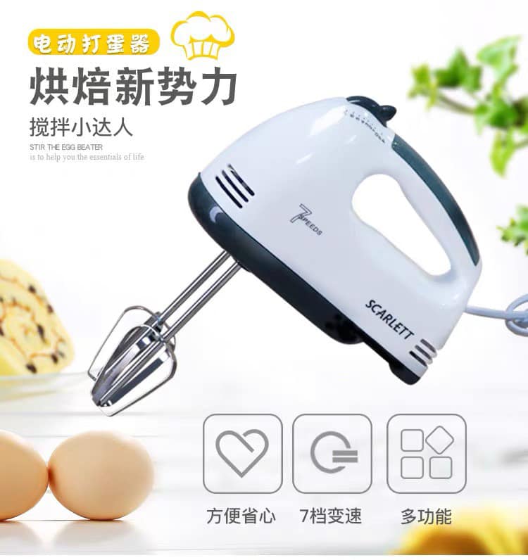 Máy đánh trứng cầm tay 7 tốc độ scarlett - công suất 180w - tặng kèm 4 đầu đánh trứng cao cấp.