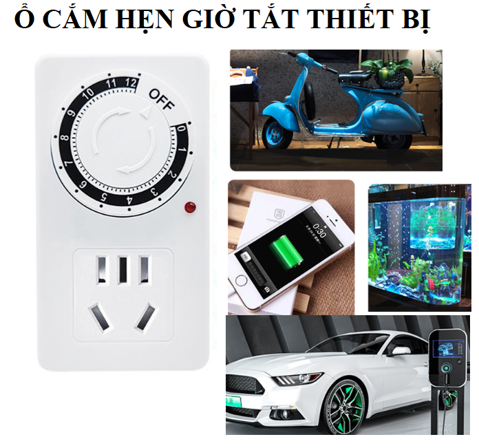 Dùng để hẹn giờ tắt các thiết bị điện như sạc xe đạp điện, điện thoại, máy ảnh, bể cá... để tránh quên gây chai, phồng pin có thể gây nguy hiểm cho thiết bị
