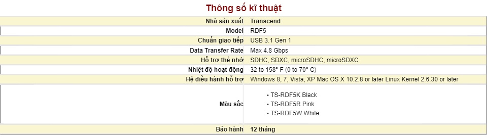 Đầu đọc thẻ nhớ transcend ts-rdp5k