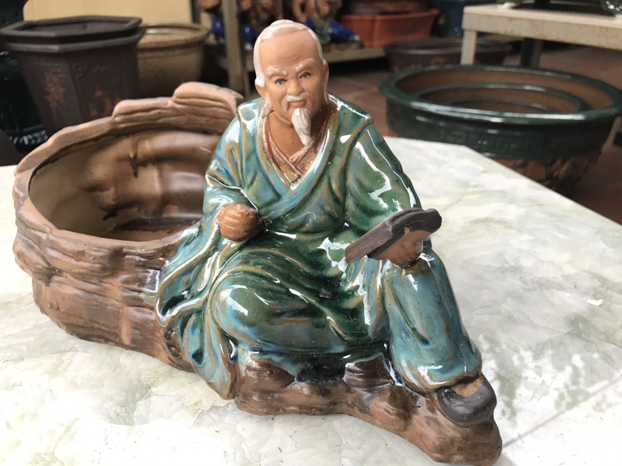 Chậu tượng thần tràHàng gốm sứ Bát TràngKích thước chậu: miệng 17cm cao 11cmCao tượng: 17cmcó 2 màu để lựa chọn:Màu xanh ngọcMàu men rạn trắng: